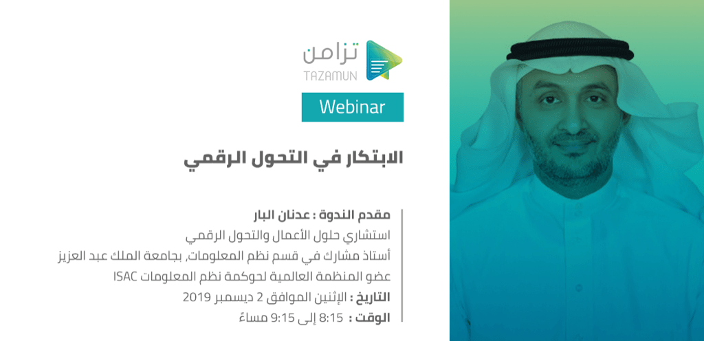 استضفنا الدكتور عدنان البار في ويبنار بعنوان “الابتكار في التحول الرقمي” وهنا ملخص الويبنار: