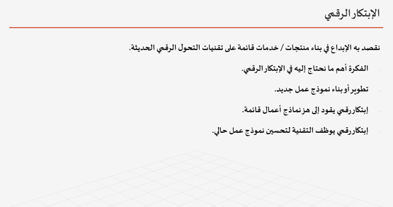 المبادرة والريادة الرقمية أصبحت جزءً اصيلاً من العمل التجاري و أحدث و لازالت نماذج إعمال مثمرة وفاعلة.