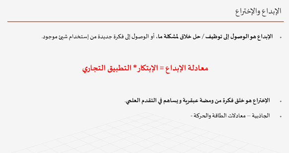 معادلة الإبداع = الابتكار * تطبيق تجاري