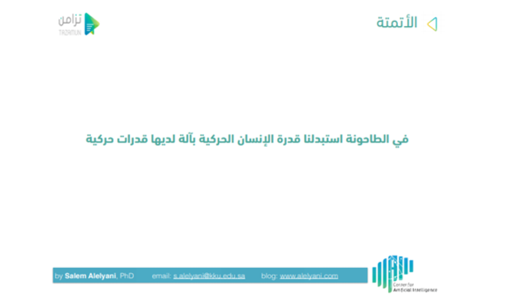 من هنا أكد الدكتور سالم على ان الاتمتة تكمن في استبدلنا لقدرة الانسان الحركية بآله لديها قدرات حركية.