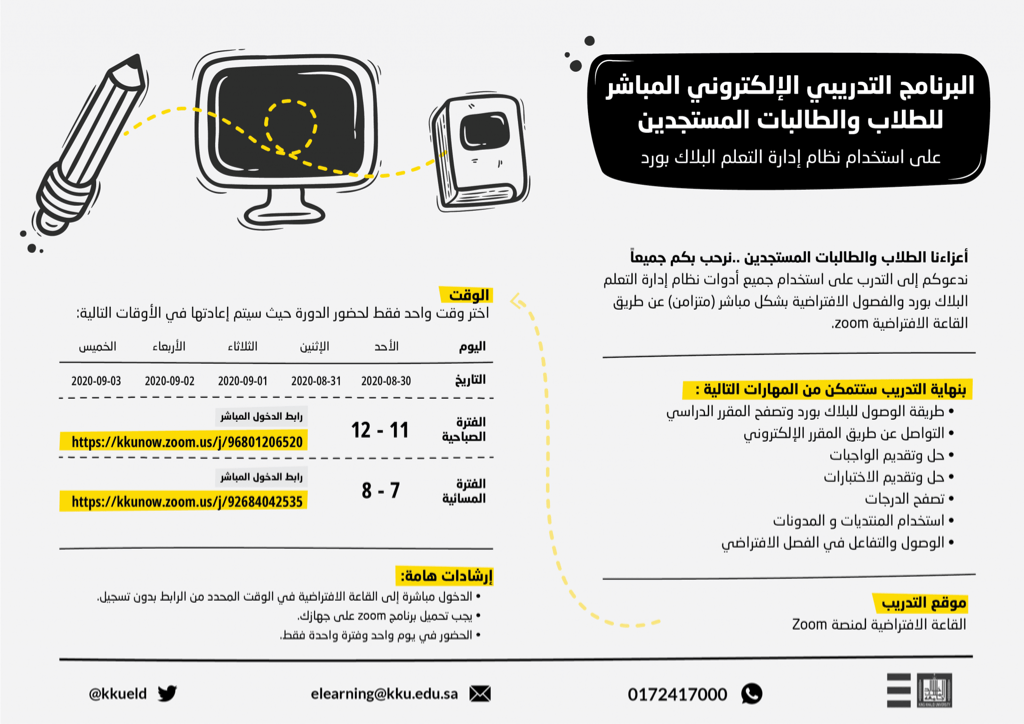 تدعوكم عمادة التعلم الإلكتروني إلى التدرب على استخدام نظام إدارة التعلم البلاك بورد والفصول الفتراضية