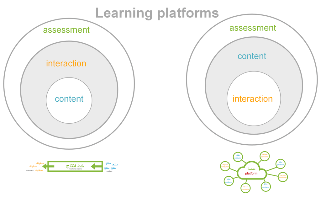 التركيز في المنصات التعليمية على التفاعل بين منتج ومستفيد بين مدرس وطالب ممكن بين معلم ومعلم أو طالب وطالب آخر