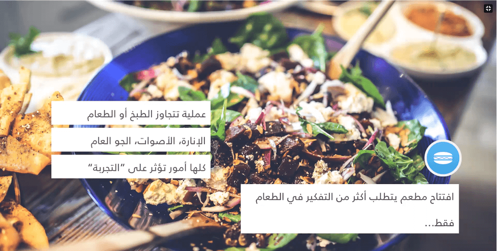 من المؤكد أن إجابة مثل الطعام أو الوصفات هي إجابة تحمل شيء من الصحة لكنها ليست كافية لما يمكن أن يشمله مشروع مثل افتتاح مطعم، فهناك أيضاً المكان، التصميم الداخلي، الإنارة، الموسيقى والكثير غيرها من الأمور التي تدعم “الطعام اللذيذ” و التي قد أو قد لاتكون في الحسبان. كلها أمور تؤثر على “تجربة” الزبون عند زيارة المطعم. كلما فكرنا وتعمقنا في هذه الأمور التي تؤثر على “تجربة” الزبون كلما كنا قادرين على تقديم خدمة أفضل.