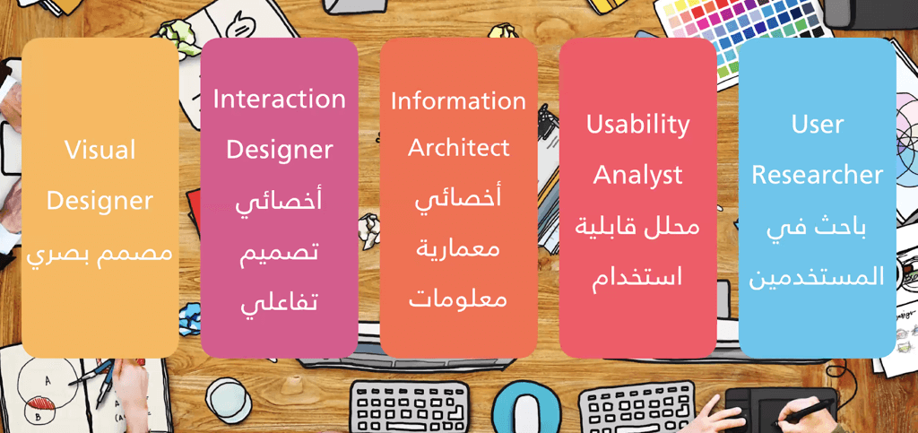تختلف فرص عمل مجال تصميم تجربة المستخدم وتتنوع بين المصمم البصري وأخصائي التصميم وأخصائي معمارية معلومات ومحلل قابلية المستخدم وباحث.